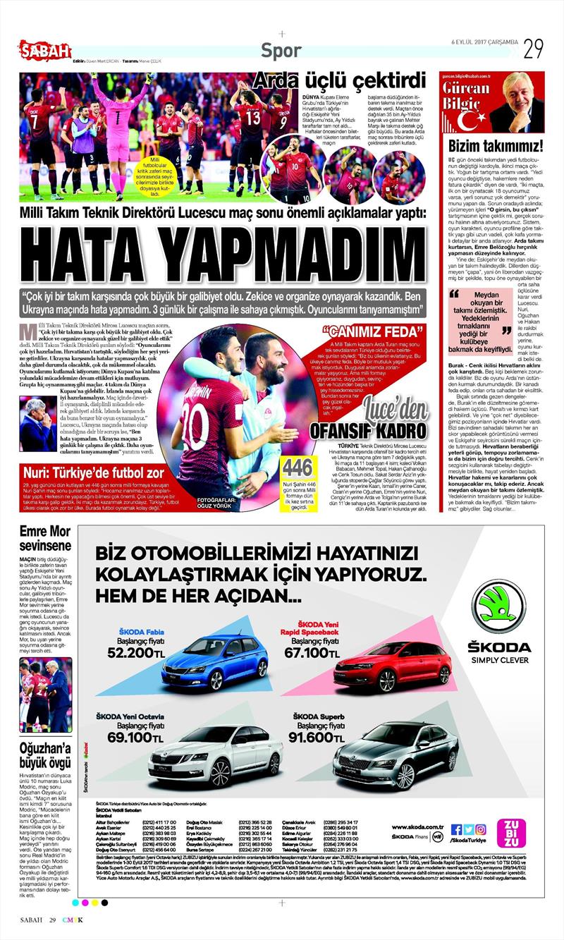 6 Eylül gazete manşeleri