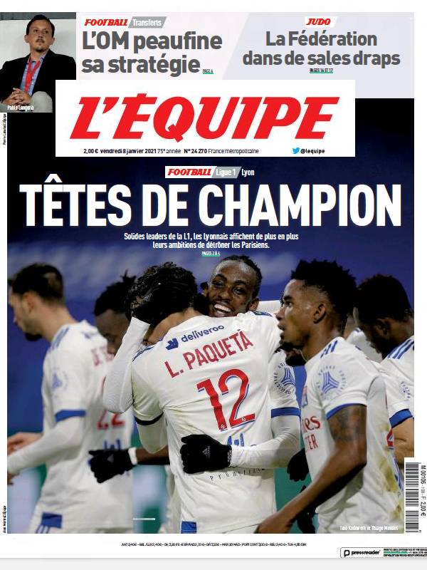 L'equipe, "Şampiyonluk kafası" başlığı ile Lyon'un Ligue 1'de liderlik koltuğunda oturduğunu yazdı. Gazete, Lyon'un, Paris Saint Germain'in hanedanlığına göz diktiğini belirtiyor.