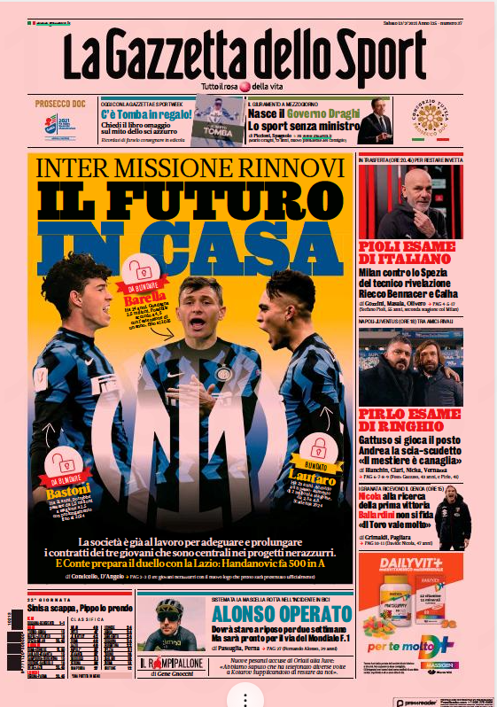 La Gazzetta dello Sport'un 'Gelecek Evin İçinde' manşetiyle gördüğü haberde Inter'in genç yıldızlarıyla sözleşme imzalamak istediği detaylandırıldı.