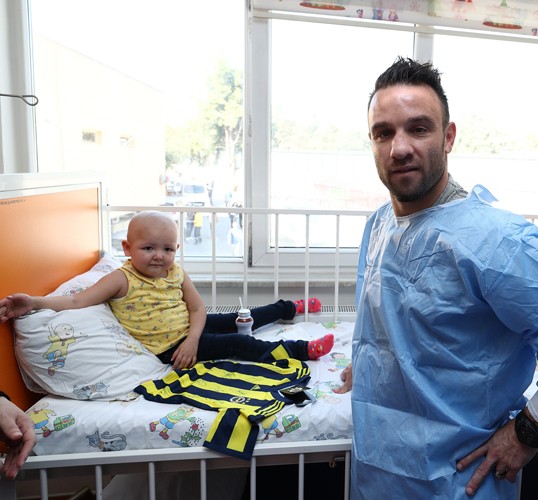 Fenerbahçeli futbolcular Volkan Demirel ve Valbuena, Okmeydanı Eğitim ve Araştırma Hastanesi hematoloji ve onkoloji bölümlerinde tedavi gören çocukları ziyaret etti.