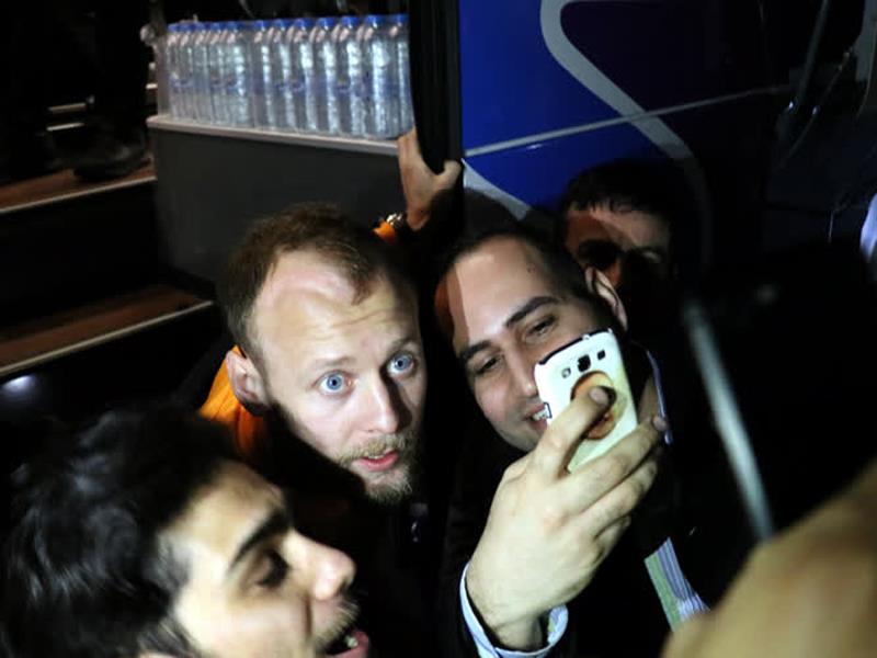 Kafile, alkışlar eşliğinde otobüse binerek konaklayacağı otele geçti.