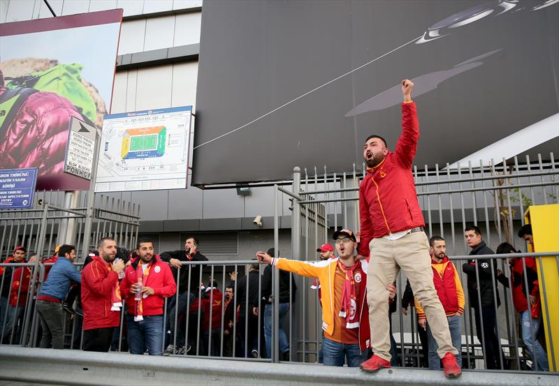 Spor Toto Süper Lig'de Fenerbahçe ile Galatasaray, Ülker Stadı'nda karşılaşacak. TT Arena'da toplanan Galatasaraylı taraftarlar, otobüslerle maçın oynanacağı Kadıköy'deki Ülker Stadı'na geldiler.