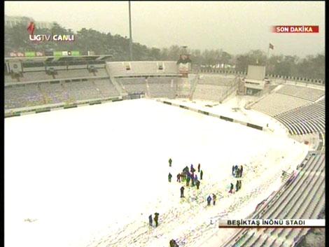 Yoğun kar yağışı hem İstanbul'u hem de futbolu vurdu !.. Beşiktaş-İBB maçı yoğun kar yağışı nedeniyle ileri bir tarihe ertelendi. Maç öncesi saatlerce süren temnizleme işlemleri olumlu netice vermedi. İşte İnönü'den manzaralar...
