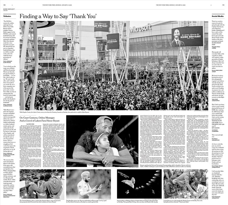 Kobe Bryant'ın vefatı dünya basınında