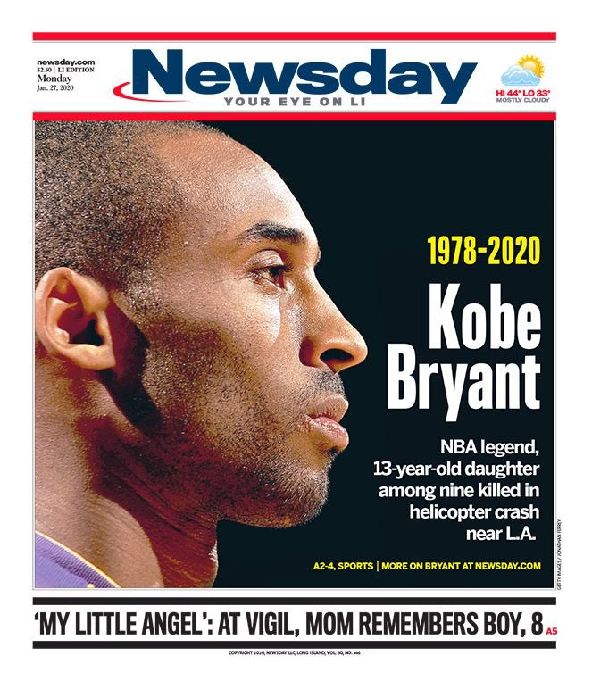 Kobe Bryant'ın vefatı dünya basınında