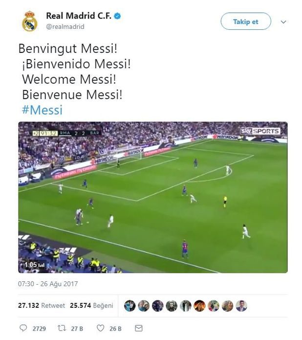 İspanyol kulübünün resmi sosyal medya hesabı yaklaşık 1 saat süre sonra geri alındı ve yapılan tüm paylaşımlar silindi.