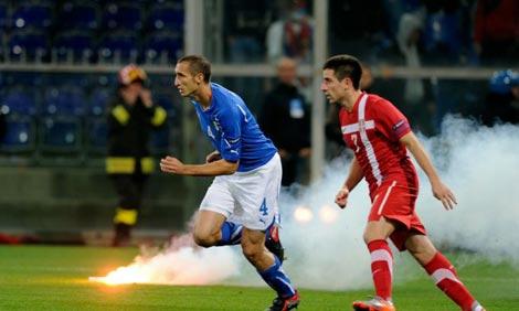 EURO 2012 elemeleri C Grubu'nda İtalya'nın Sırbistan'ı konuk ettiği maçın 7. dakikasında çıkan olaylar, maçı yarıda kalmasına sebep oldu.