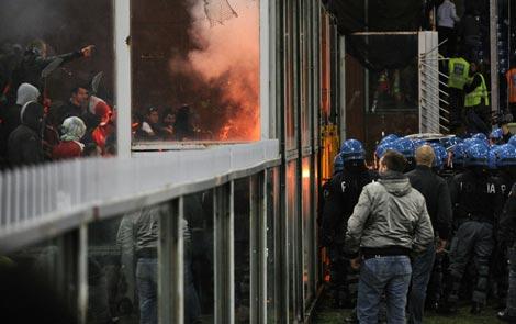 EURO 2012 elemeleri C Grubu'nda İtalya'nın Sırbistan'ı konuk ettiği maçın 7. dakikasında çıkan olaylar, maçı yarıda kalmasına sebep oldu.