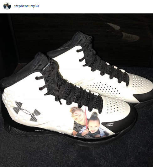 Curry ayakkabılarına kızlarının fotoğrafını eklettirdi.