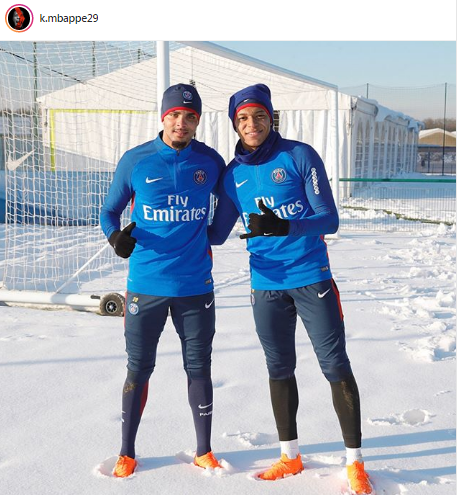 Mbappe ve Kurzawa: KAr altında idman