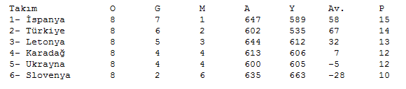 İlk tur grubundan puanların da taşındığı 2. tur I Grubu'nda son durum şöyle: