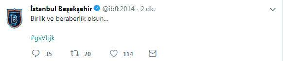 Medipol Başakşehir, Spor Toto Süper Lig'in 31. haftasında oynanan Galatasaray - Beşiktaş derbisi öncesi sosyal medya hesabından derbi paylaşımı yaptı.