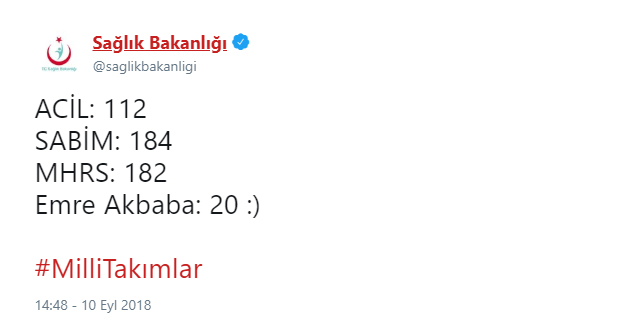 A Milli Futbol Takımımızın, deplasmanda İsveç karşısında 2-0 geriye düşmelerine rağmen aldıkları 3-2'lik galibiyetin ardından Sağlık Bakanlığı oyuna sonradan girerek maçın kaderini değiştiren golleri atan Emre Akbaba için ilginç bir paylaşımda bulundu.